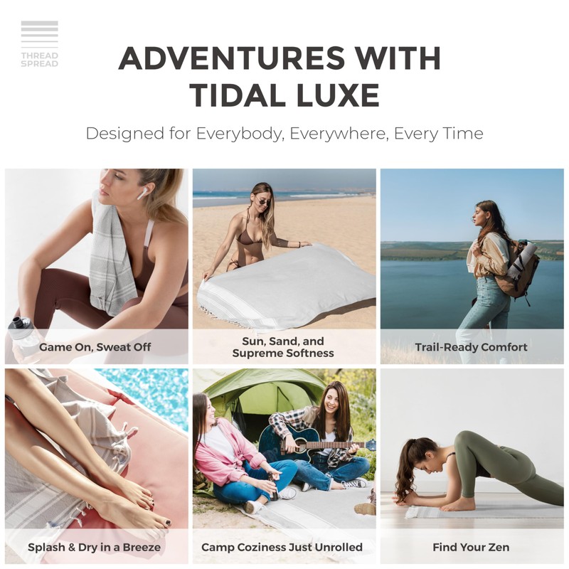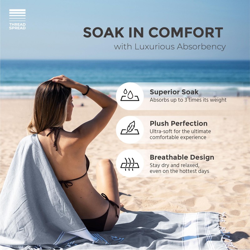 - Toallas de playa 100% algodón completamente resistentes a las arenas: abraza la calidez del sol y el abrazo del océano con las toallas de playa Tidal Luxe de Thread Spread. A diferencia de las toallas gruesas que se sujetan a la arena, nuestra ligera toalla de playa tiene una superficie lisa que hace que sea fácil cepillar la arena. Toalla de playa de viaje perfecta para todas tus necesidades de verano