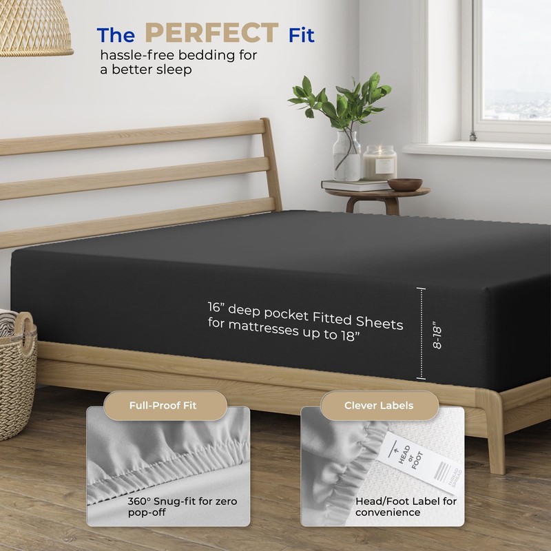- Fitted Sheet Doesn't Pop Off: Our queen-fitted sheet fits like a glove to any mattress you have at home. With all-around premium elastic and deep pockets, our fitted sheet queen size hugs the mattress so it doesn’t slip, slide, bunch up, or pop-off at night. Includes 1 twin fitted sheet only 60" W x 80" L that fits both low foam and tall mattresses that are 8-16" deep