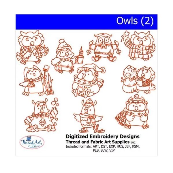 ThreadArt Embroidery Design Set - Owls(2) - 10 Designs - 9 Formats - USB Stick
