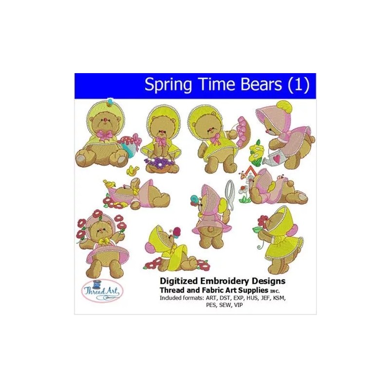 ThreadArt Embroidery Design Set- Spring Time Bears(1) - 10 Designs - 8 Formats - USB Stick