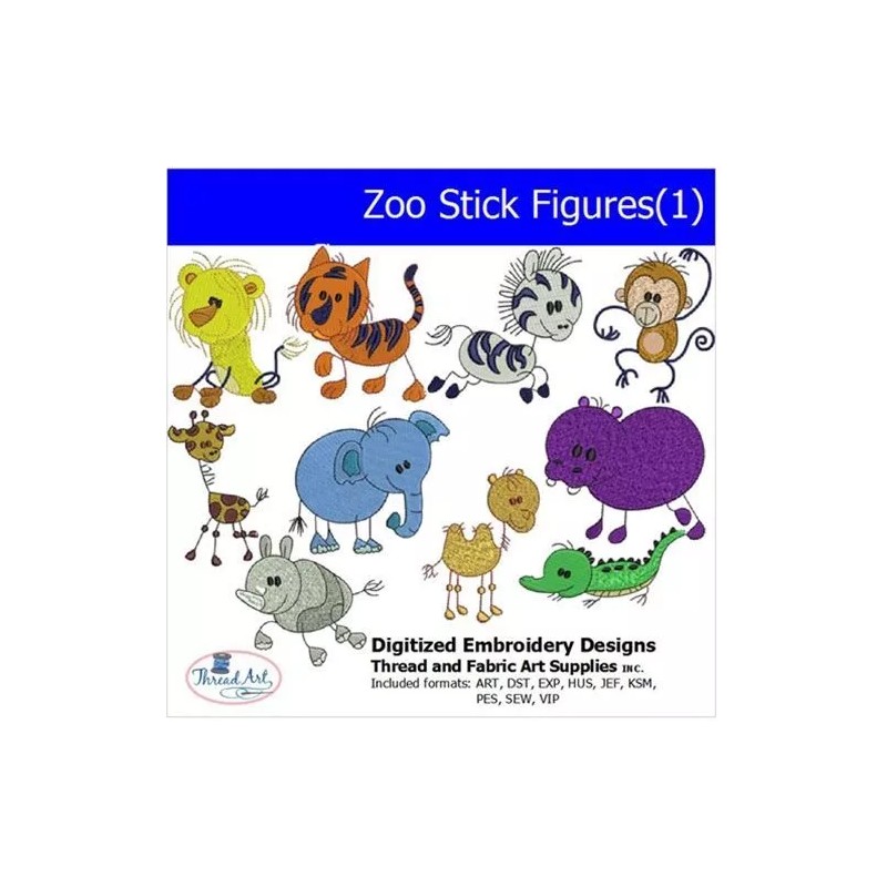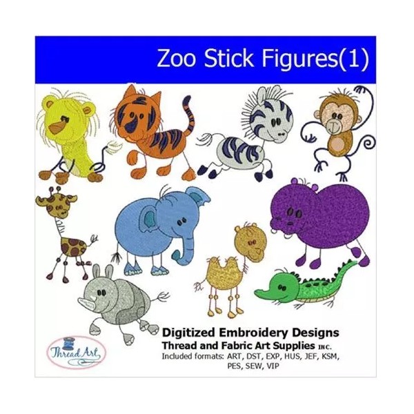 ThreadArt Embroidery Design Set- Zoo Stick Figures(1) - 10 Designs - 9 Formats - USB Stick