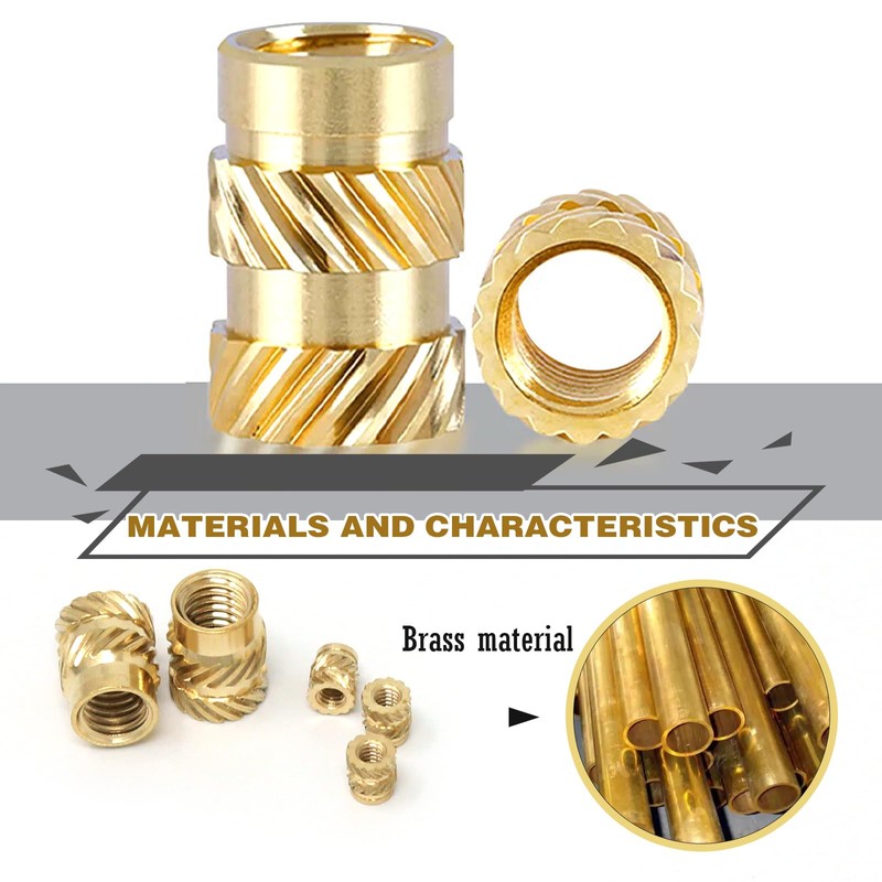 - 【High Quality Brass, Corrosion Resistant】This thread insert is made of high quality brass. It is made using hot melt technology and has excellent properties such as high temperature resistance, waterproof and shock resistance. It is also robust and durable. Even if it is in a humid environment for a long time, it does not react chemically with substances in the air, resulting in rust or looseness.