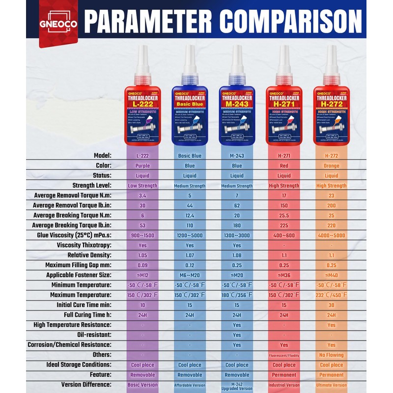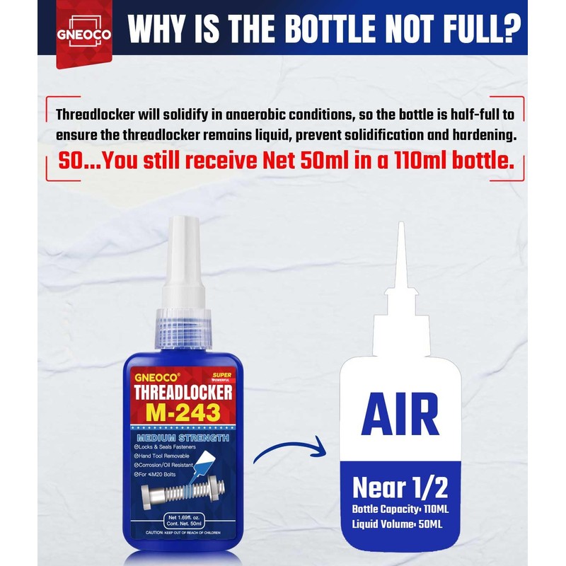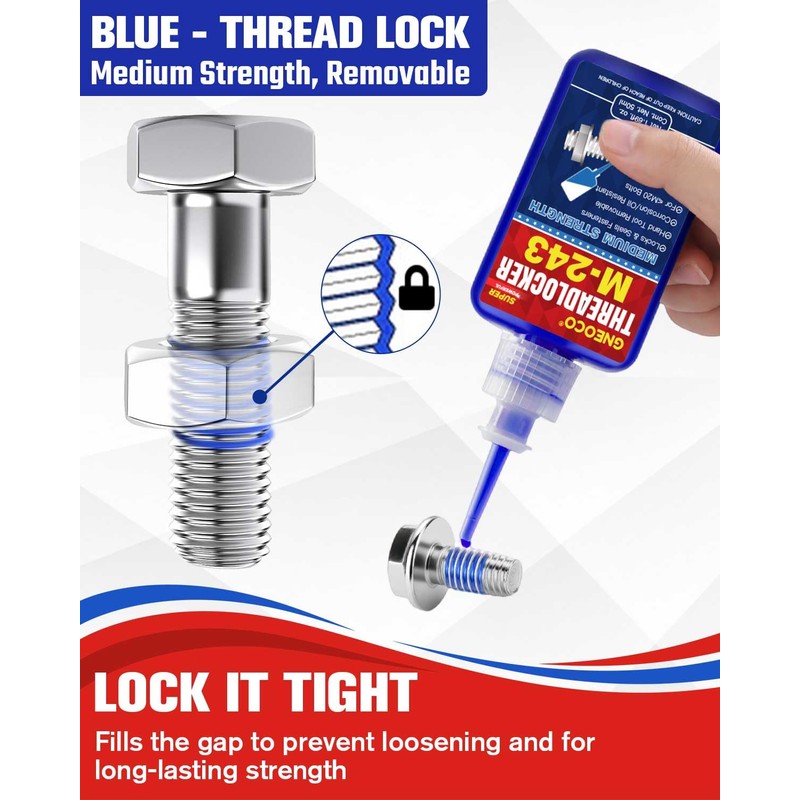 ThreadLocker Blue, Thread Lock Medium Strength Lock Tight for Nuts, Bolts, Fasteners and Metals, Anaerobic Curing Metal Glue to Prevent Loosening and Corrosion (M243-50ml)
