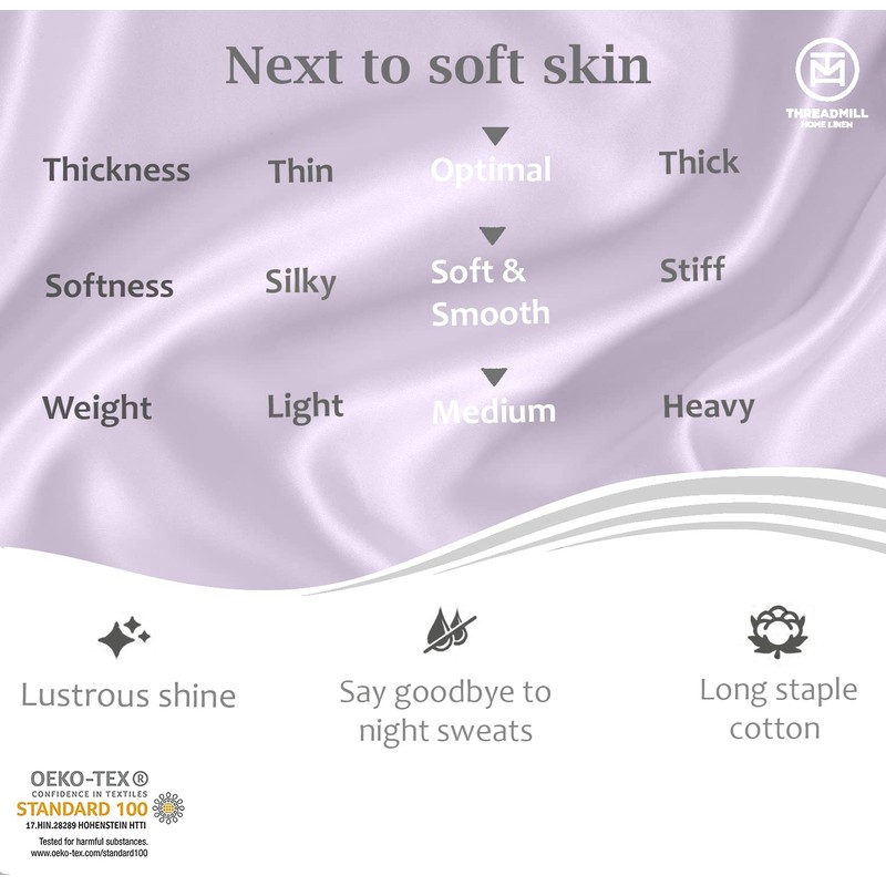 Threadmill Cotton Fitted Sheet Queen Size - 300 Thread Count 1 Piece Lilac 16 Inch Elasticized Deep Pocket Sateen Sheets for Queen Size Bed - Snug Fit Soft & Durable Hotel Quality Bottom Sheet