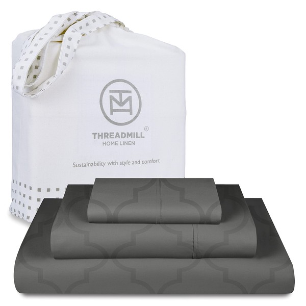 Threadmill Cotton Twin Sheet Set | 100% Cotton Sheets for Twin Size Bed | Damask Jacquard Sateen Twin Bed Sheets Set with 16” Deep Pocket | Soft Breathable 3-Piece Cooling Sheet Set | Dark Grey