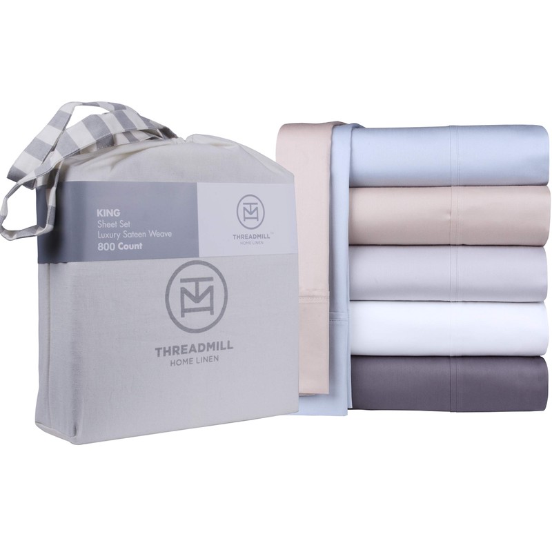 Threadmill Home Linen 800 Thread Count King Sheet Sets - 100% Extra-Long Staple Cotton Sheets, Luxury 4 Piece Set for King Size Bed with Deep Pocket, Smooth Sateen Weave, Dark Grey