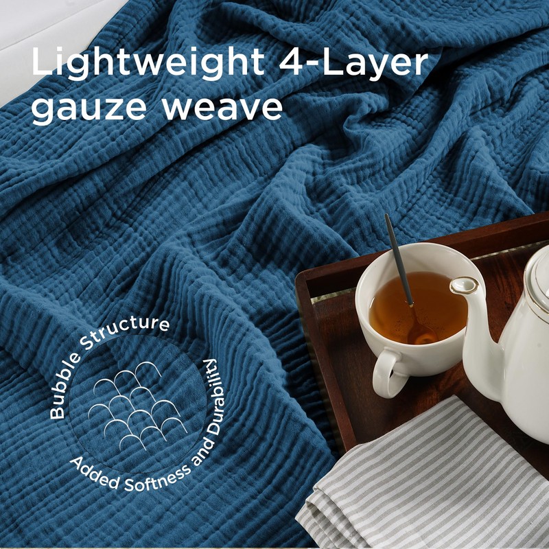- 4-Layer Design: The four layers of muslin fabric enhance the blanket's durability and warmth while maintaining its lightweight nature, perfect for all seasons.