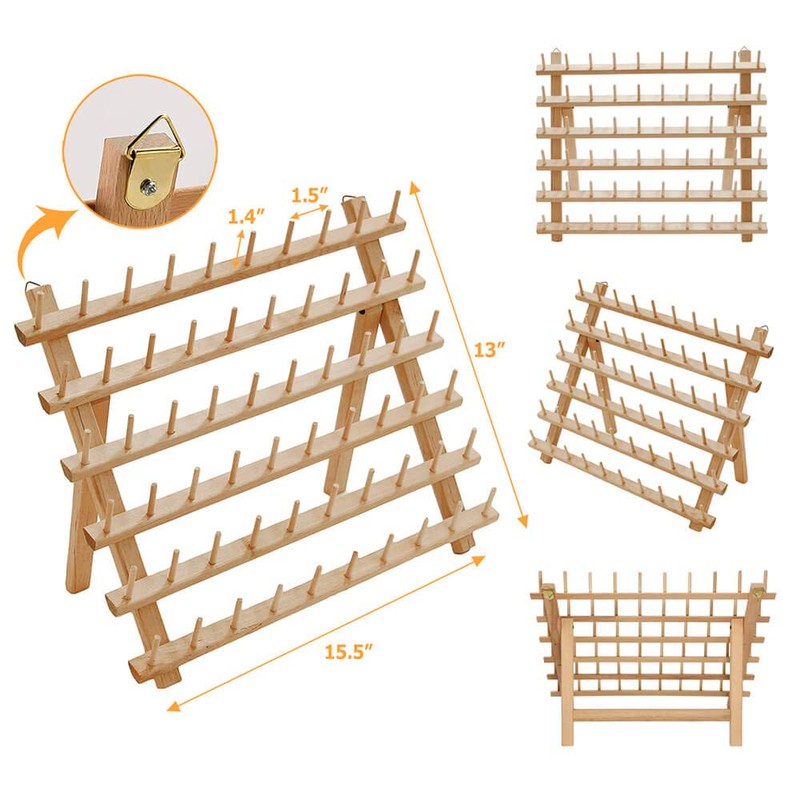 - ✔️ BEST THREAD ORGANIZER - Works great and is much BIGGER compared to other brands. Superior build quality and made of durable natural wood that can be painted or stained to match your sewing room or machine’s color. It stands at 13.1” tall and 15.6” wide. The spindle is 1.4” tall and is 1.5” apart from one another.
