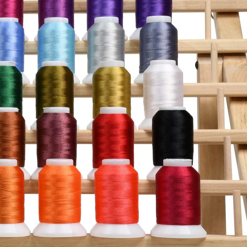 - ✔️ WALL MOUNTING HOOKS - Comes with two pre-installed large mounting hooks, sturdy flip-out legs with a horizontal bar that adds stability to the entire thread rack. It hangs on the wall and stands freely on a table to organize all your serger, quilting, embroidery, and sewing thread and floss. No additional hardware is required!