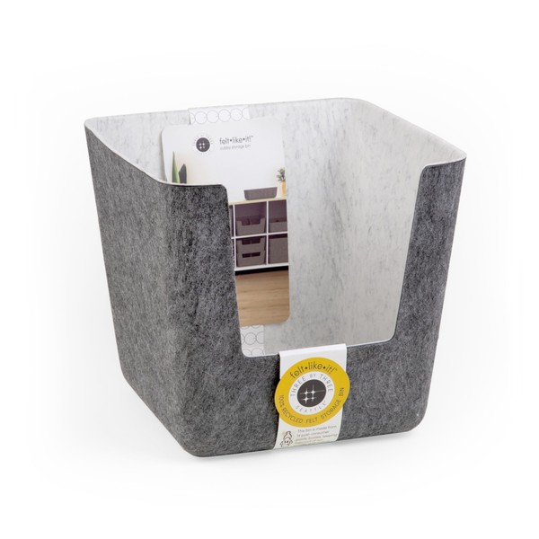Three by Three Seattle felt·like·it!™ Large Cubby Storage Bin Set of 2 – Eco-Friendly Recycled Felt Bins for Home & Office Organization, Charcoal