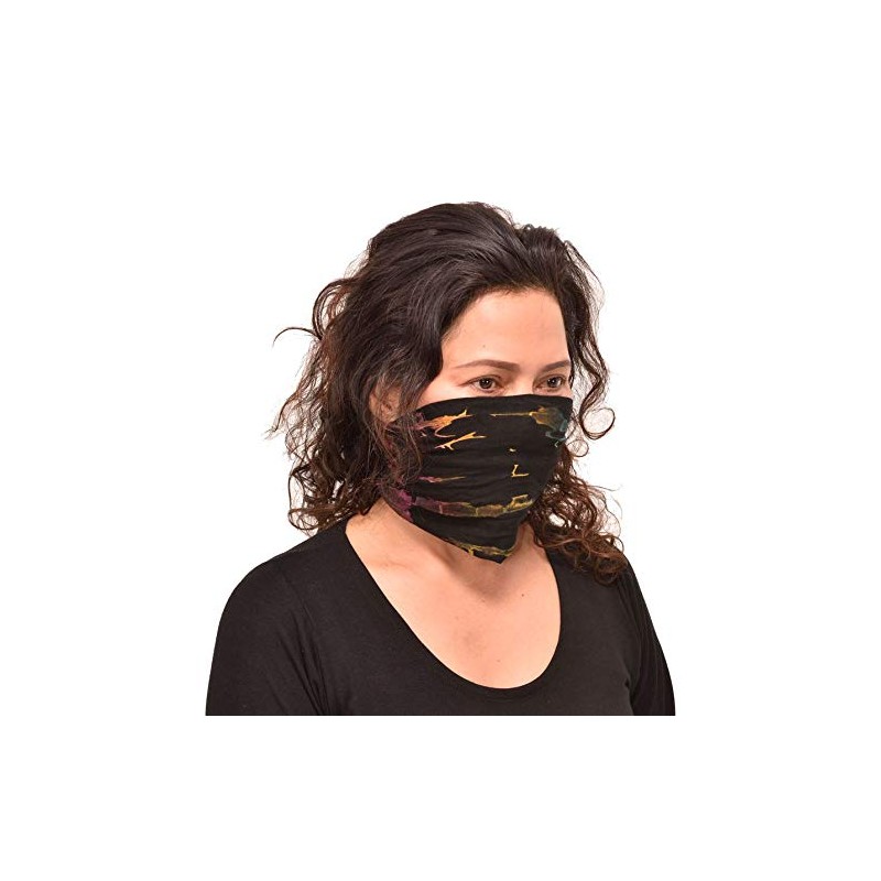 Three Cranes Gallery Tie-Dye Headband/Mask Combo Reverse Tie-Dye Thailand Mudmee Spandex Rayon Hair Wrap Boho Headband Bohemian Hair Wrap Women's Headband