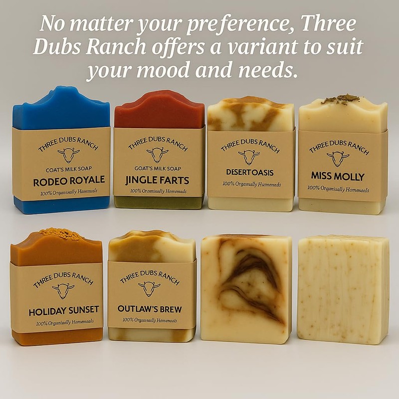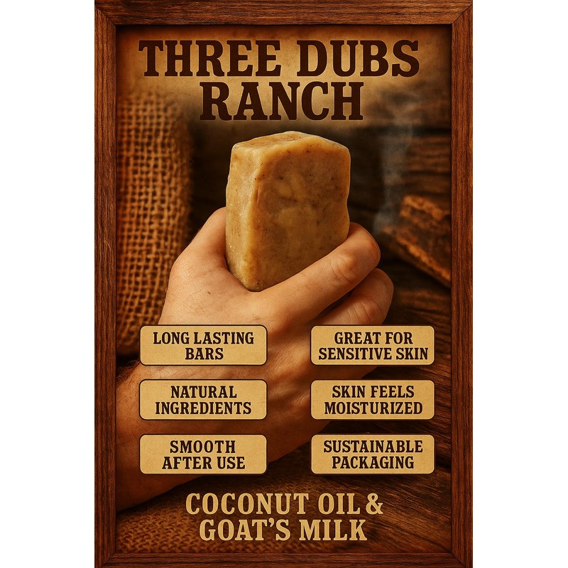 - PURE & SIMPLE FORMULA: Made with minimal ingredients, Three Dubs Ranch Goat Milk soap bars offer a straightforward clean. Infused with all natural ingredients and colorants it provides a refreshing scent without unnecessary additives.