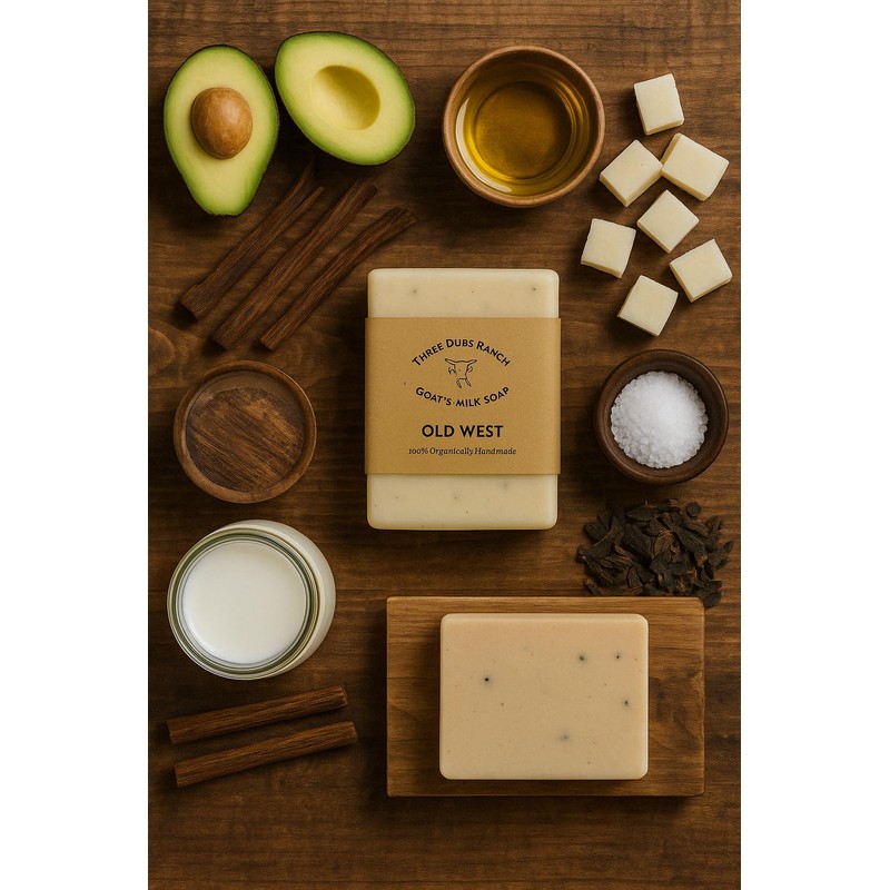 Three Dubs Ranch Old West: Handmade All-Natural, Goat Milk Soap Bars made with Tallow, For Hands & Body. Sandalwood, Patchouli scented Soap Bars. Made in Texas.(3.5 oz Bar 3 Pack)