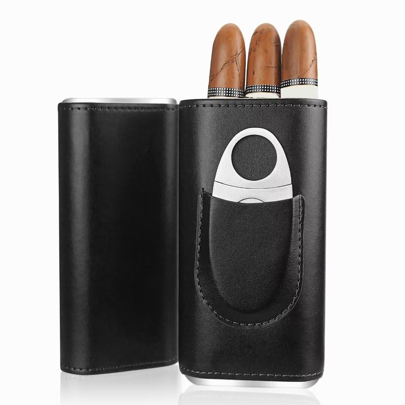 • >>Comes with a cigar cutter for ease of use; Holds up to 3 cigars, ring gauge 52, up to 6 inches long