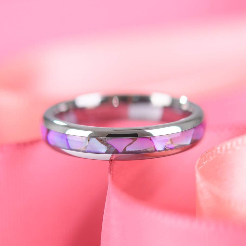 THREE KEYS JEWELRY Tungsten Carbide Womens 4mm Wedding Band Ring Polish for Women Purple Abalone Shell Inlay Engraved Engagement Size/Personlized Ring/Custom Ring 8