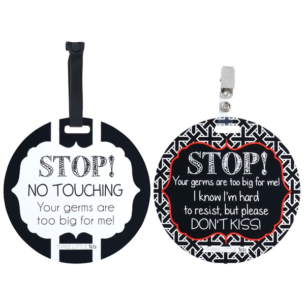 Three Little Tots Two Pack - No Kissing and Black and White Gender Neutral No Touching Baby Car Seat and Stroller Signs - CPSIA Safety Tested