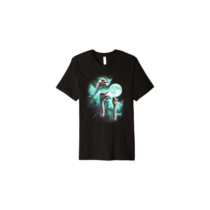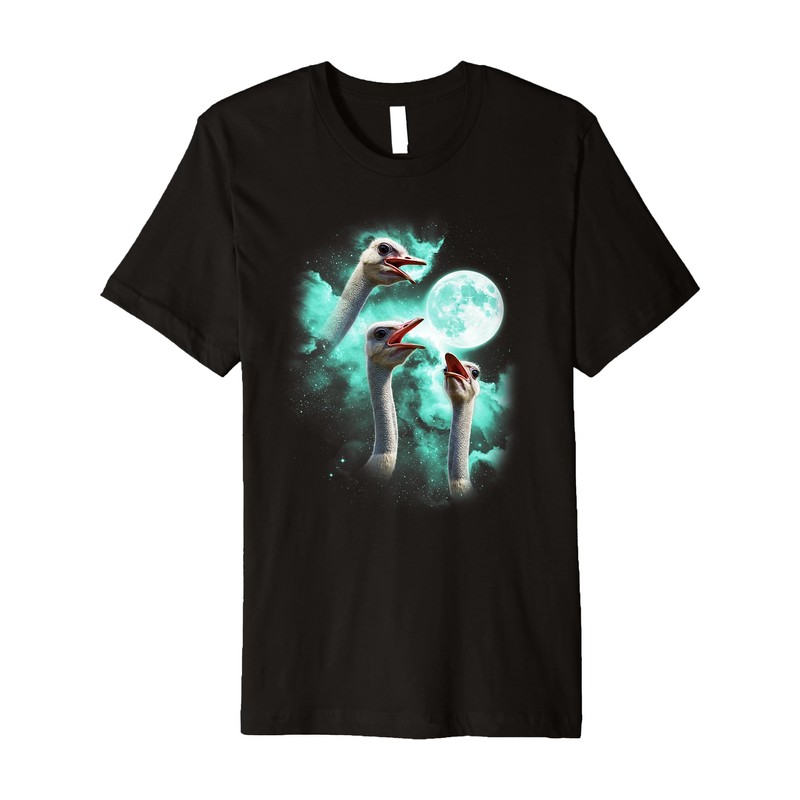 Three Ostrich Howling at The Moon tie dye Green Premium T-Shirt