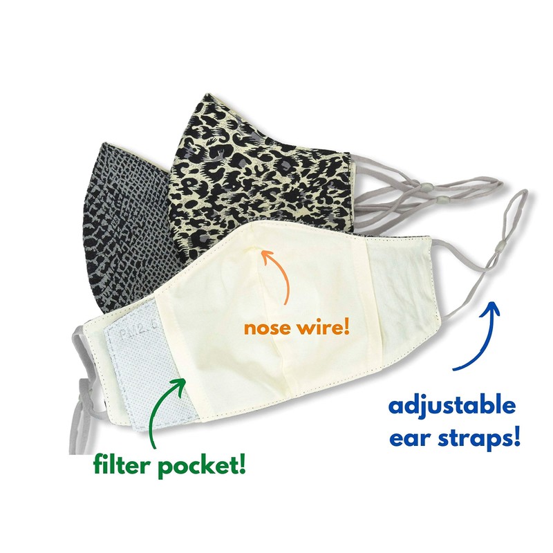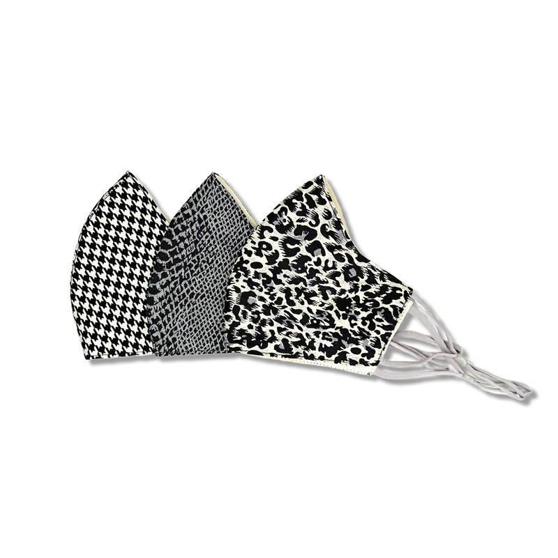 - FUN & FASHIONABLE FACE MASK: Stay stylish while you protect yourself with our unique cotton face masks. This pack features fashion-forward patterns, including a black and white leopard, snake skin, and houndstooth.