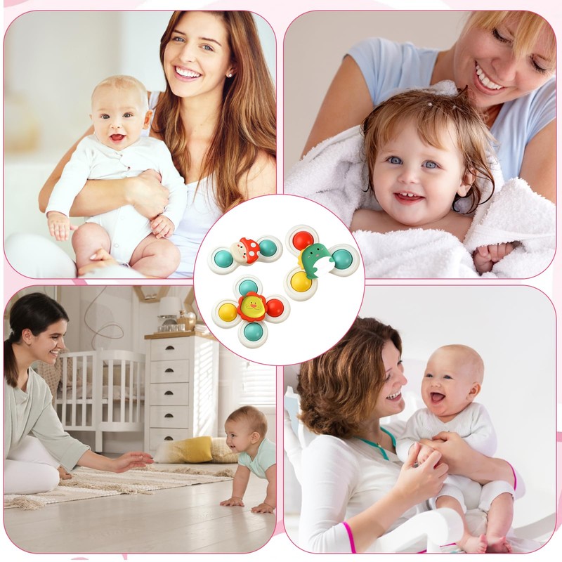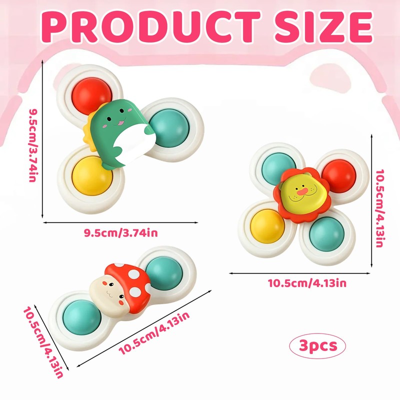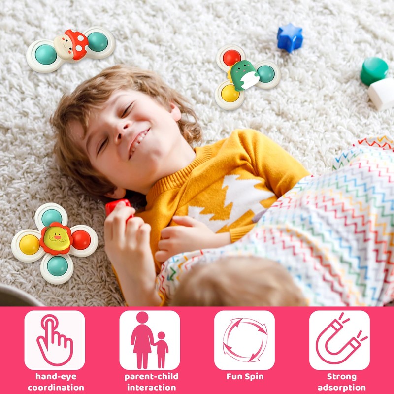 - Engaging Sensory Play: Three suction spinners for babies designed to stimulate visual and tactile development; Bright colors and spinning motion capture attention, encouraging focus and curiosity during playtime; Ideal for developing fine motor skills and hand-eye coordination in toddlers aged 1-3 years