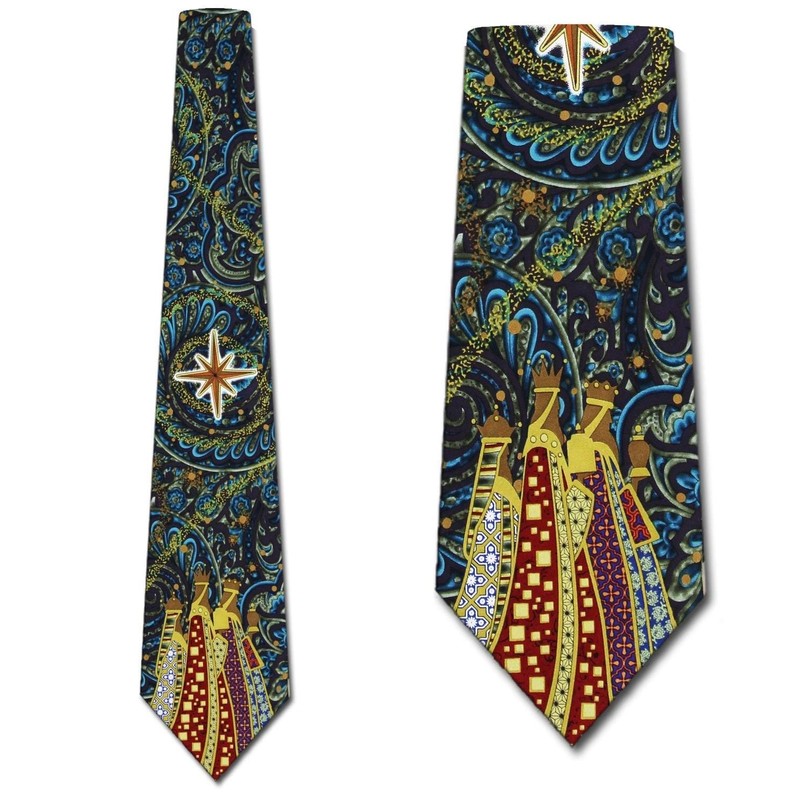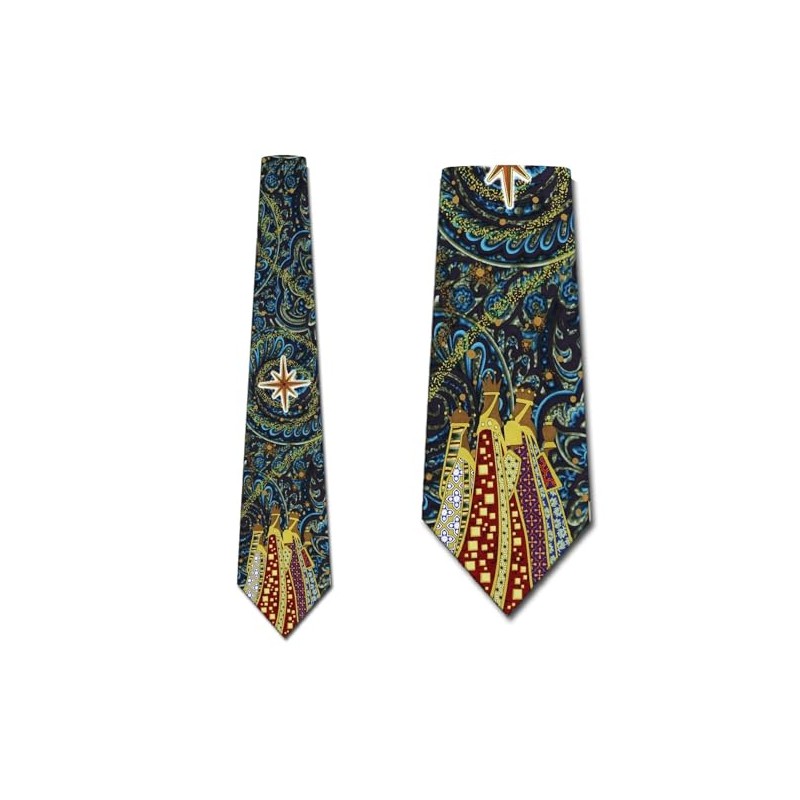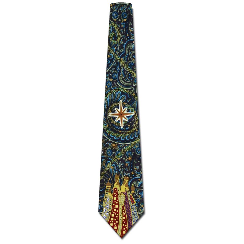- Religious themed Chritmas necktie featuring the Three Wise Men on a colorful paisley design