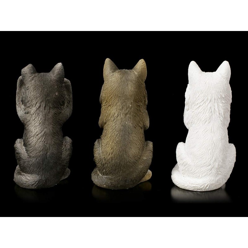 Three Wise Wolf Figures - See Nothing, Hear Nothing, See Nothing, Set of 3 Animal Figures, Decorative Items, Hand Painted