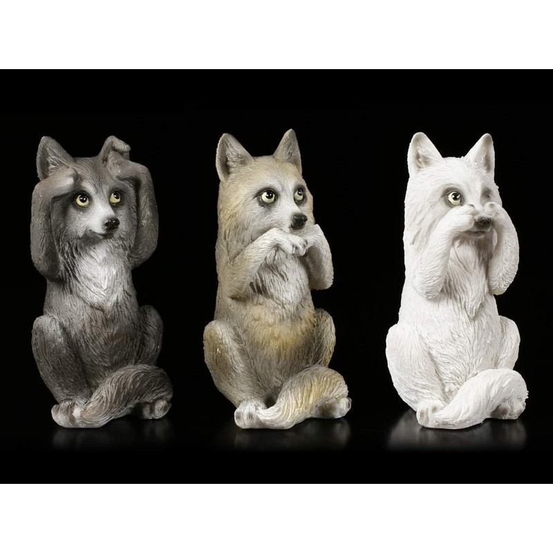 - Three wise wolf figures - see nothing, hear nothing, see nothing, set of 3