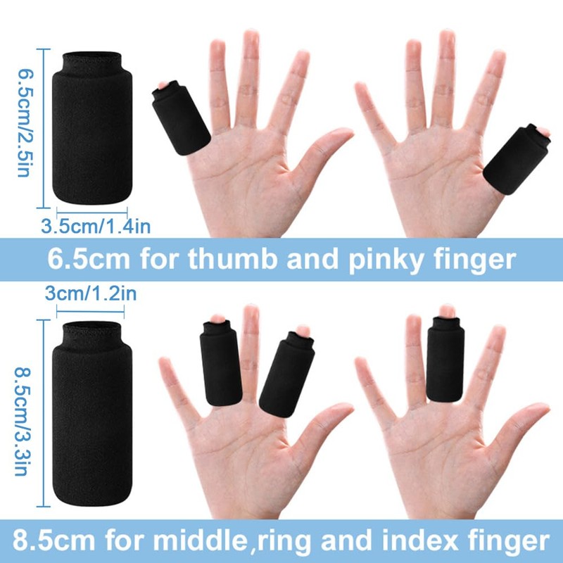 - Made of elastic spandex, the sleeves are soft and offer compression and cushioning for finger comfort, suitable for most individuals.