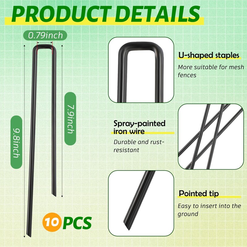 - Strong and Stable: benefit from U shaped ground stakes that provide both strength and stability, they can securely hold the fence and protect your gardening work even if the dog tries to dig a hole, while also preventing the dog from running loose