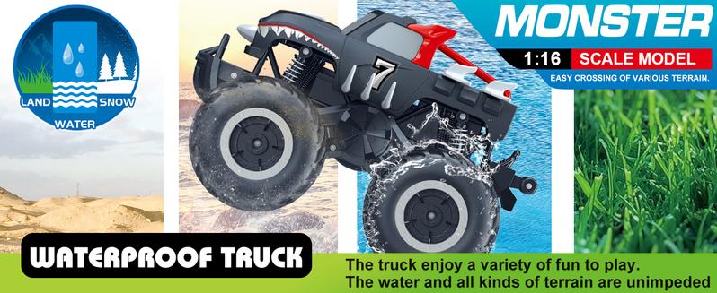 - Threeking RC Pick-up Toys Gifts Presents for Kids Ages 6+.///Waterproof body,can easily pass various terrains, even in water and rain.///The remote is not waterproof.