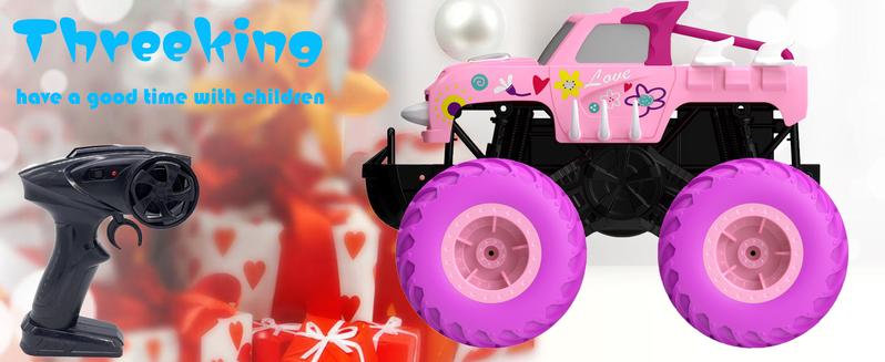 THREEKING christmas gift ideas kids christmas gifts boys christmas gifts Threeking 1:16 Monster Truck Waterproofing Pick-up SUV RC Car Toys for Kids - Color: Pickup-Pink