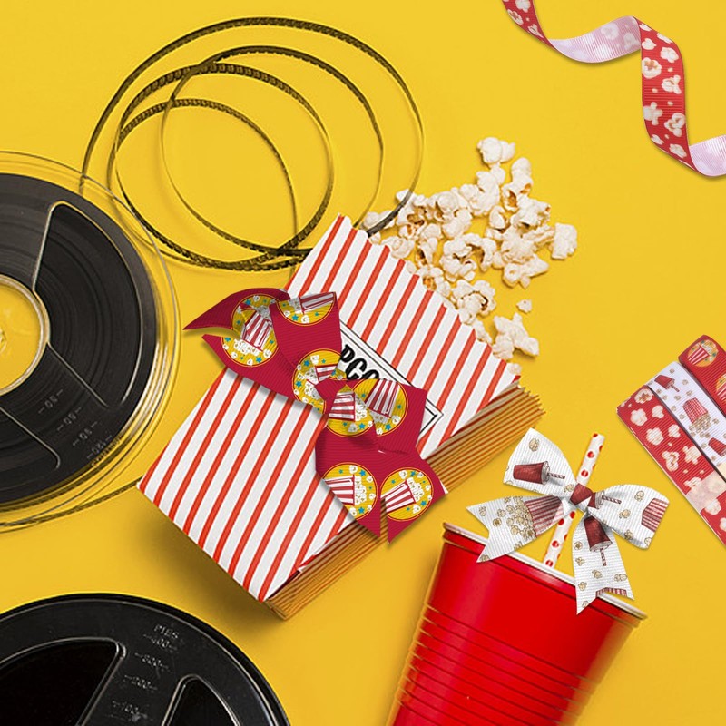 These 3/5" popcorn grosgrain ribbons adopt the common colors of popcorn and the classic popcorn style design, well in line with ppopcorn theme party, suitable for meeting the needs of decorations.