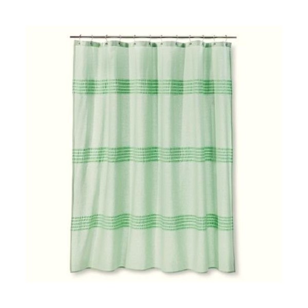 • THRESHOLD SHOWER CURTAIN GREEN PLEATED STANDARD TOP 72IN X 72IN 100% COTTON MACHINE WASHABLE WITH LIKE COLORS