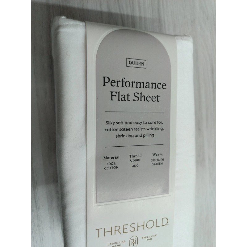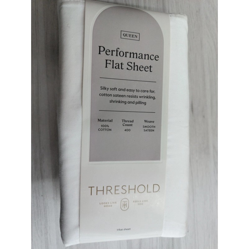 Threshold Performance Flat Sheet Queen White Cotton Sateen,
