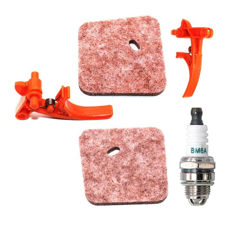 Package: 2 x Throttle Triggers, 2 x Air Filter, 1 x Spark Plug