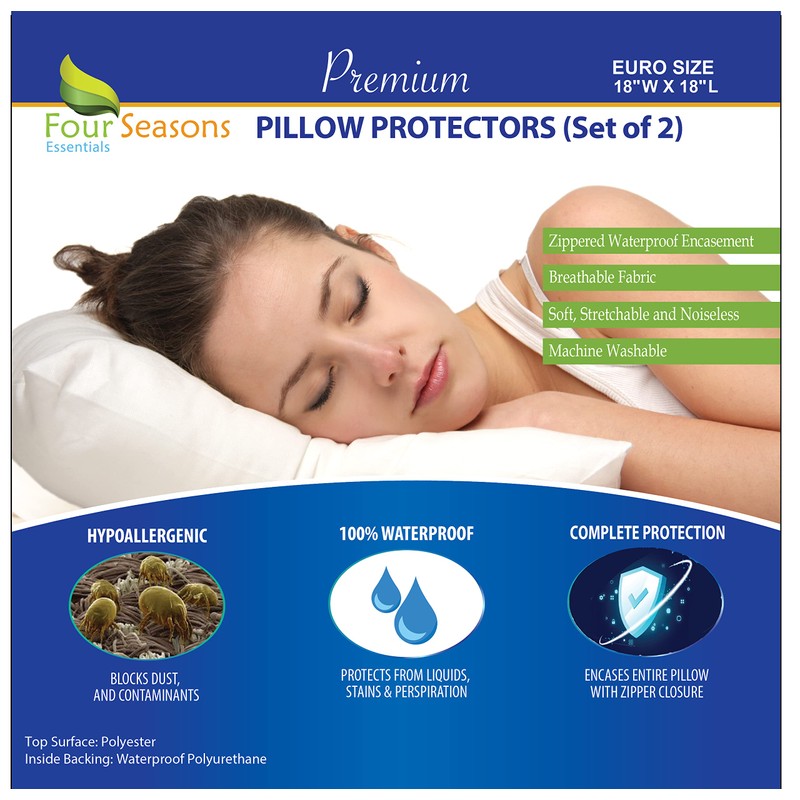 - Set includes Two Euro Size Pillow Protectors measuring 18" (Width) x 18" (Length)