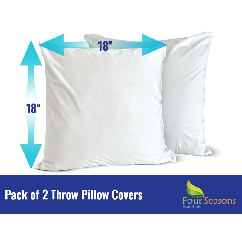 Throw Pillow Covers (Set of 2) - Square 18x18 Pillow Protectors Waterproof Hypoallergenic Dust Proof Zippered Encasement