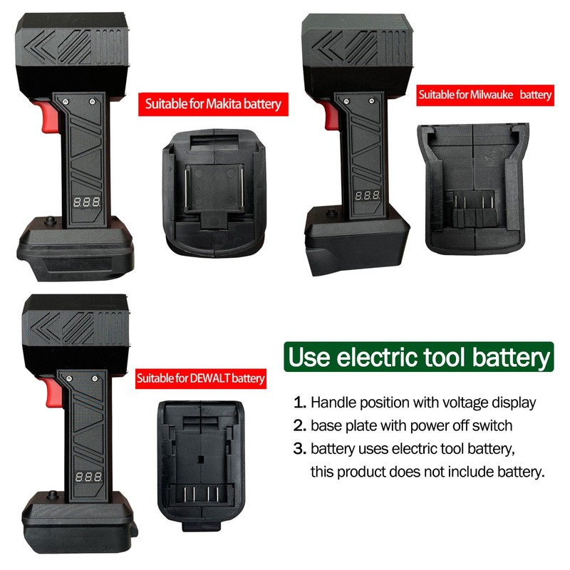 - The battery used in this product is the battery on the electric tools of hardware products. The advantage is that the battery is relatively easy to find, and the product can be disassembled for long-term use.
