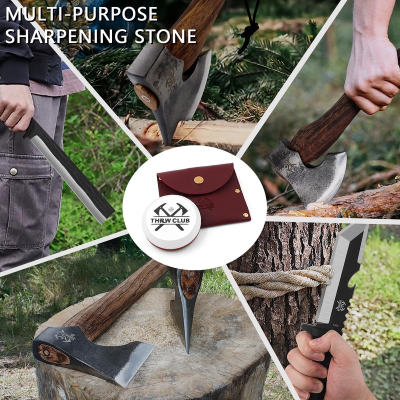 - Perfect MatchOur axe sharpening kit includes a sharpening stone and a portable tool bag in a leather sheath, making it easy to carry. You can pack it in a backpack or attach it to a belt, making it suitable for jungle survival, wood chopping, and logging.