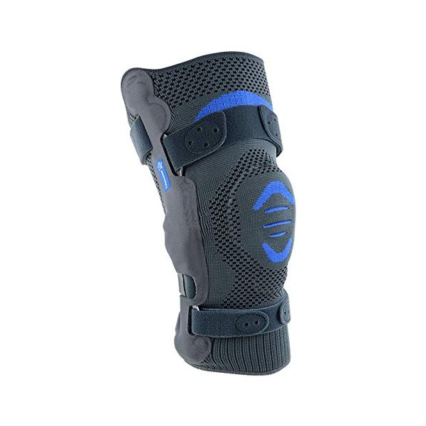 - Kniebandage mit seitlicher Verstärkung und integriertem Gelenk