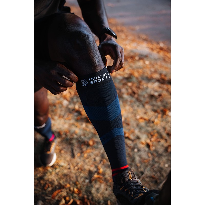 Thuasne - Trail Up Active Running Compression Socks - Calf Support - Protection and Proprioception, Black / dark blue / red, L