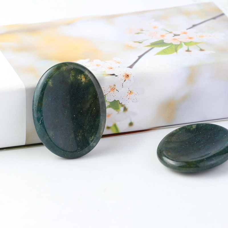 Thumb Bag, Palm Worry Stone, Polished Healing Reiki Gemstone for Crystal Therapy, Relaxed Mind, Balancing Chakra and Decoration, 4.6 cm (Moss Agate)