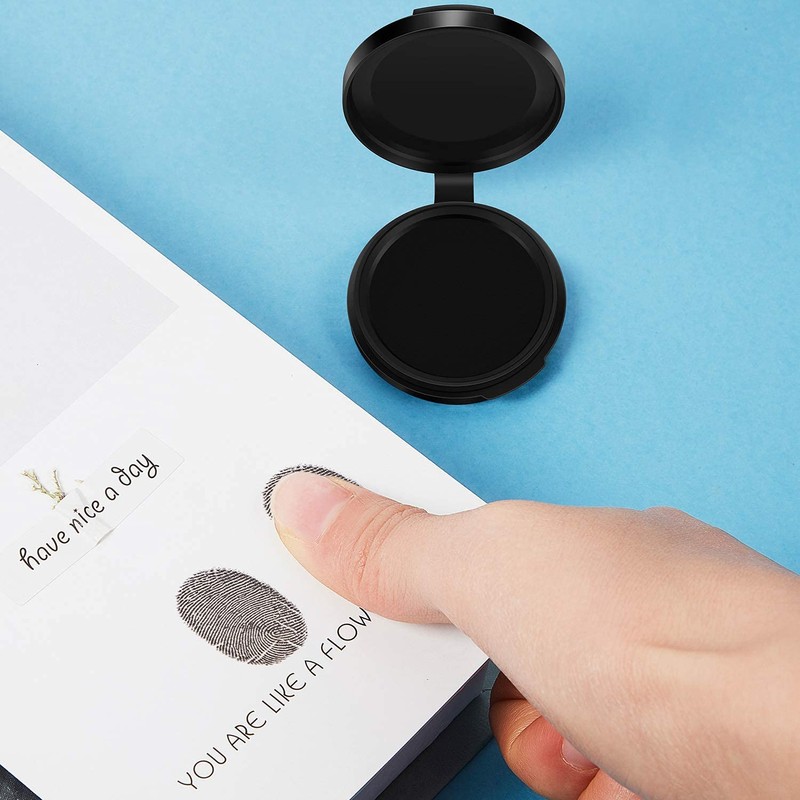 Thumbprint Ink Pad Professional Finger Ink Pad Quick-Drying Erasable Ink Pad with Clear Impressions for Identification and Security ID, Round (Black)