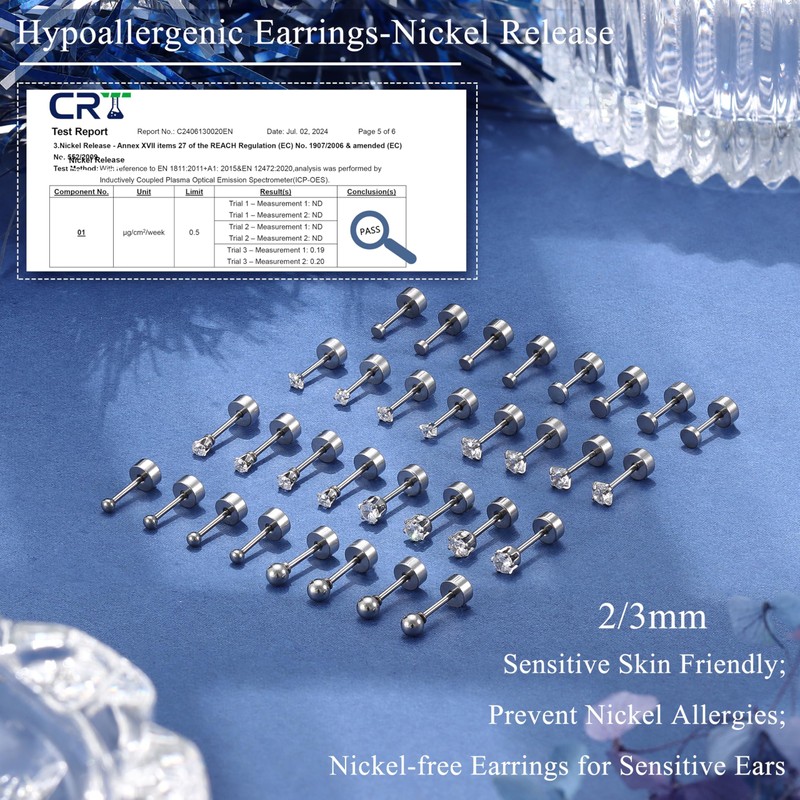 - Hypoallergenic Surgical Steel Earrings--316L surgical steel cartilage earring.Hypoallergenic earrings for women,no-Lead & no-nickle.Safe and durable to wear.Inlaid with Sparkled AAA+ CZ ,14K gold plating make bright and stable color.The cartilage flat back earrings is comfortable to wear for a long time,even you can wear it while sleeping won't fall out