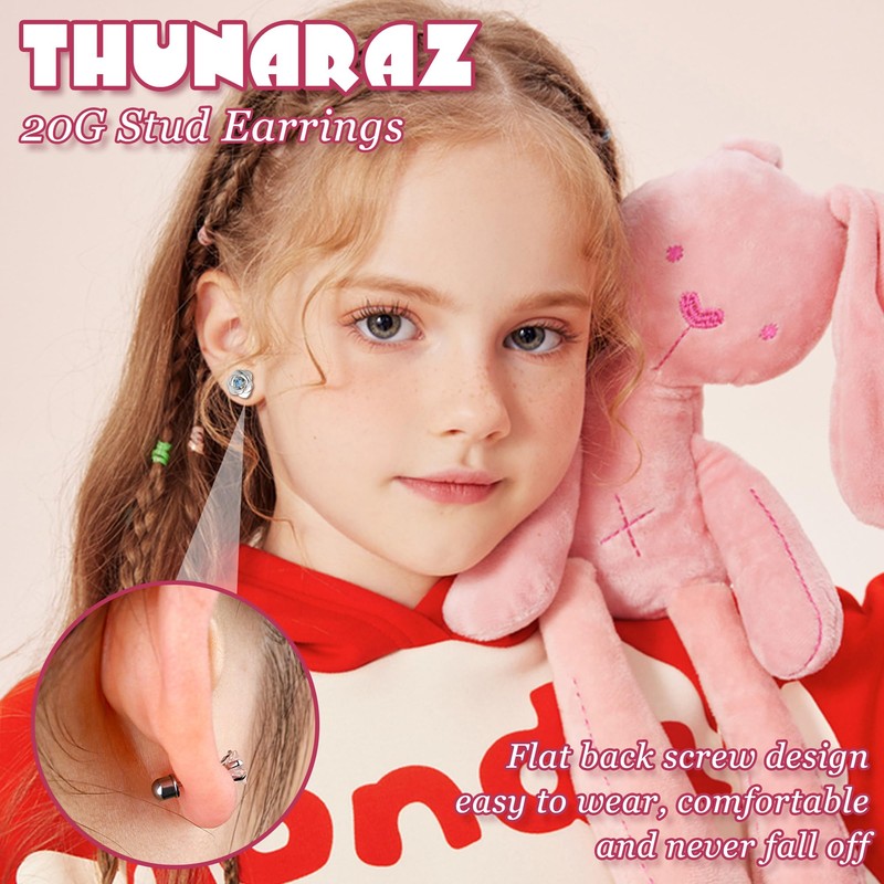 THUNARAZ Hypoallergenic Birthstone Stud Earrings for Women Butterfly Flower Heart CZ Screw Back Earrings Jewelry Gift for Birthday Christmas