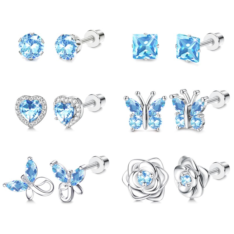 - Cute Birthstone Earrings:6 pairs cute birthstone earrings, including heart-shaped, butterfly, CZ, flower and other 2 pairs screw back earring studs; Giving you more options to match perfectly with a variety of outfits