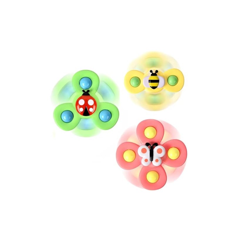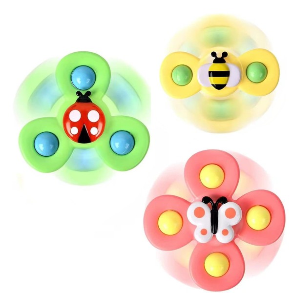 - The innovative suction cup base ensures hassle-free playtime, allowing the spinners to stick to various surfaces, such as high chairs, tables, and smooth floors, keeping your baby captivated.