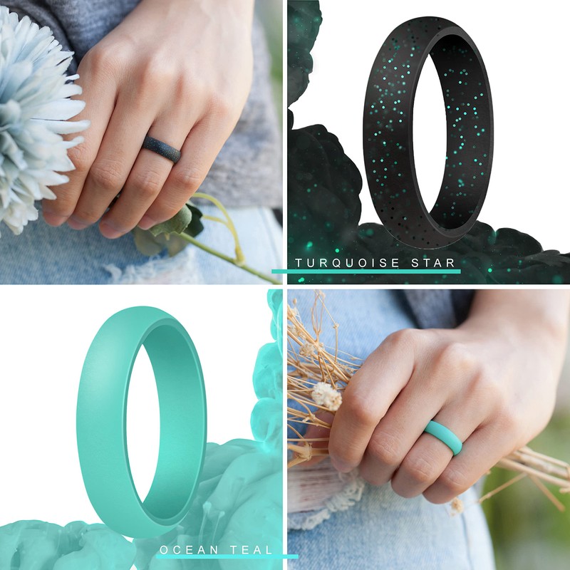 ThunderFit Anillos Boda Bandas de Silicona 7 Pack, Las Mujeres