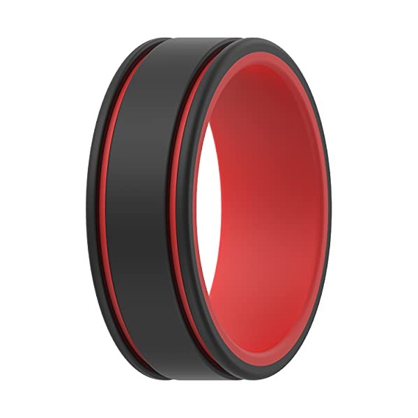 ThunderFit Men Silicone Wedding Ring 2 Layer Rings Wedding Bands - 1 Ring (Black-Red, 7.5 - 8 (18.2mm)