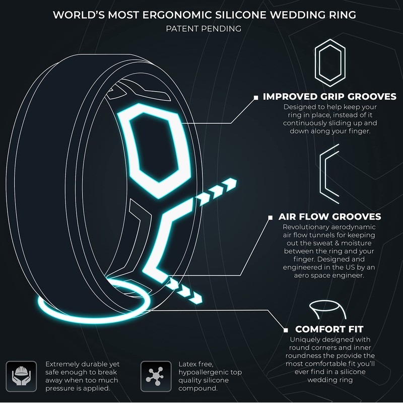 - A Must For An Active Lifestyle – Our silicone flexible wedding ring have an awesome smooth ergonomic design on the top combined with a perfect comfort fit design on the inside. All the combined with an amazing classic wedding ring design, create the perfect silicone wedding ring – by ThunderFit