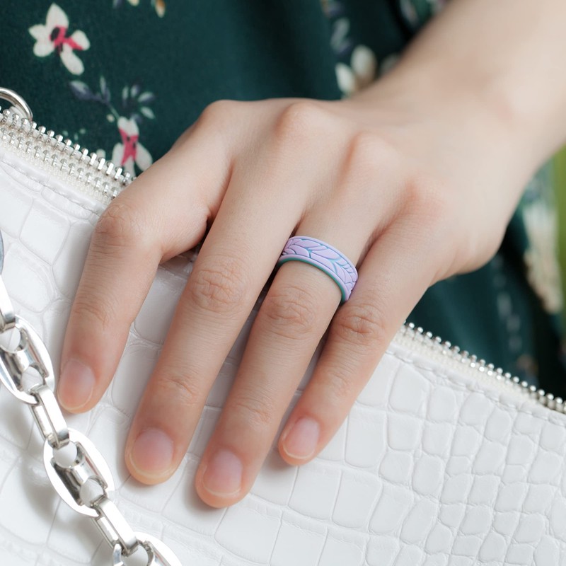 ThunderFit Silicone Rings for Women, Patterned Design Wedding Bands - 1/4/7 Variety Multipack (Teal B-White, Teal B-Light Purple A, White-Teal B, Light Purple A-White - Size 9.5-10 (19.8mm))